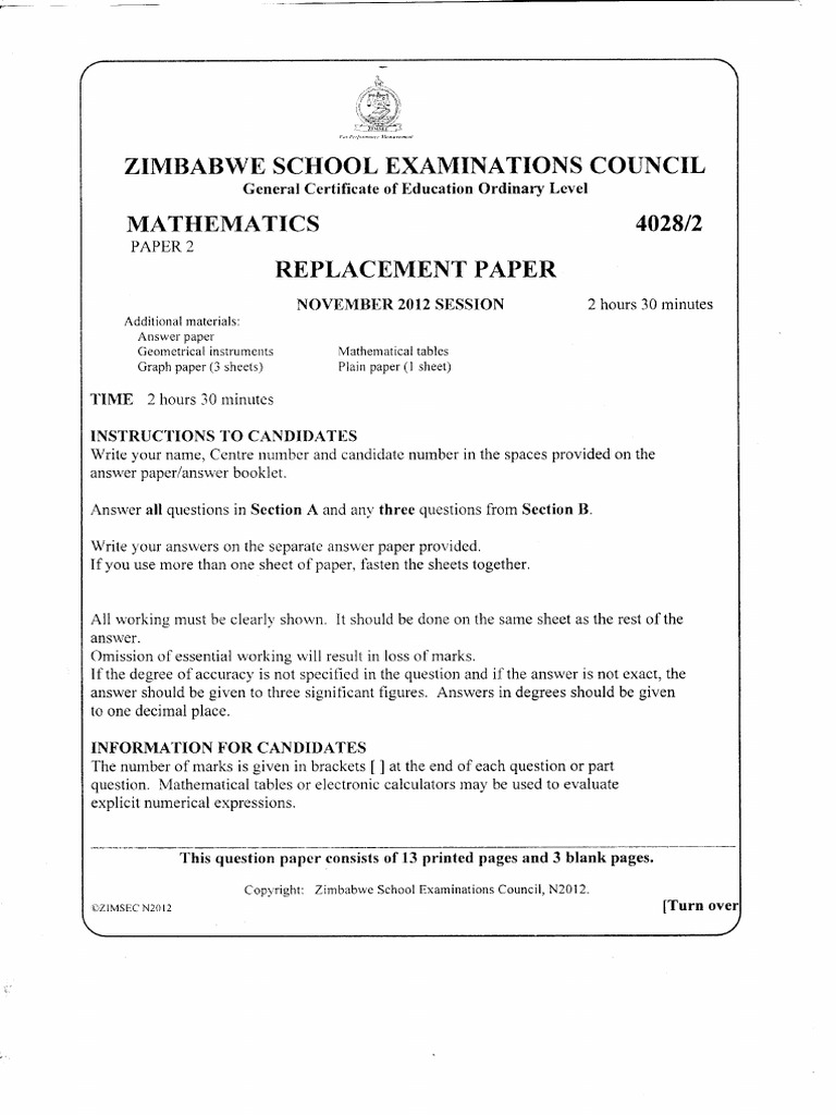 Zimsec O Level Maths Past Exam Papers - PDF Free Download. English paper 3 trial examination 2016 question paper on facebook. All books are in clear copy here and all files are secure so dont worry about it.